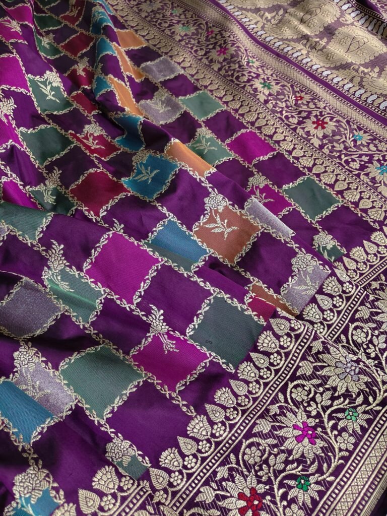 BNS Royal Rangkaat Kadhuwa Pure Katan Silk Saree – Multicolor Heritage Grid