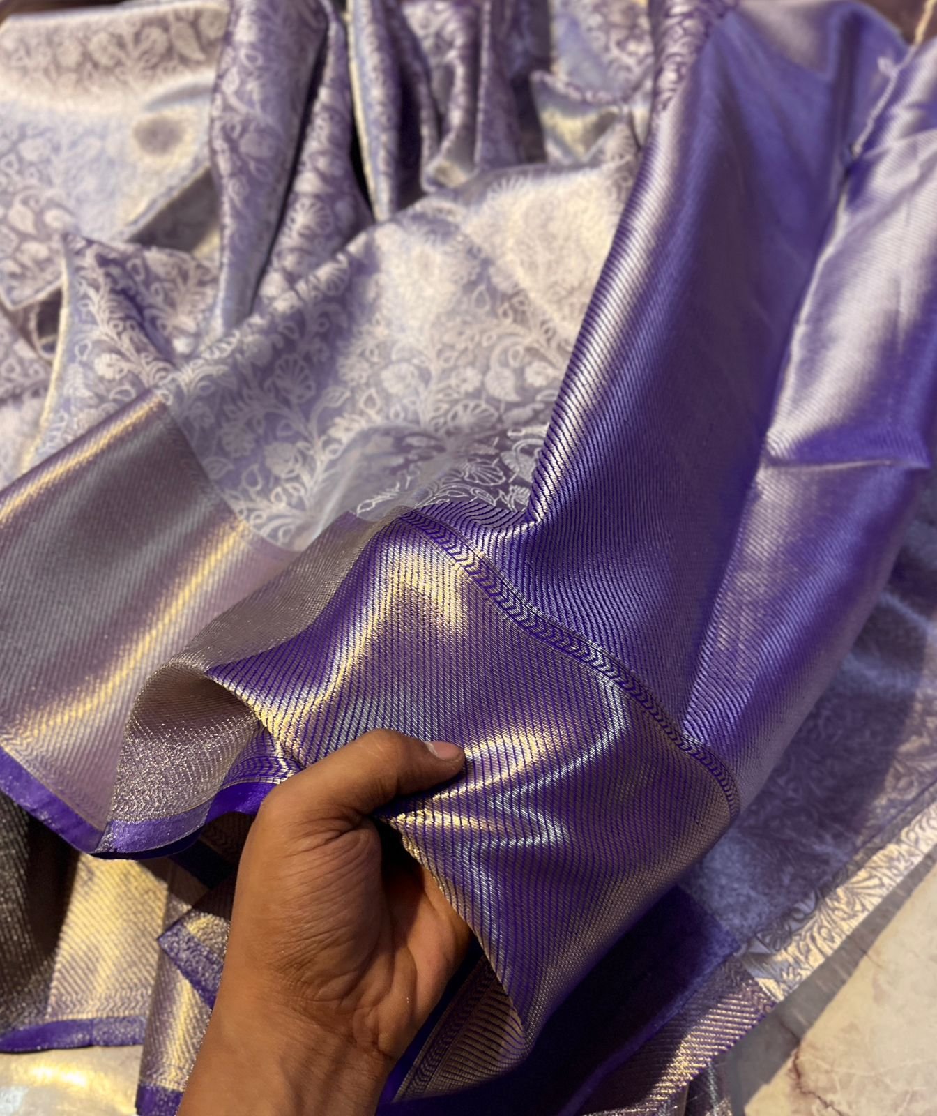 Banarasi Tissue Zari Silk Saree with Tanchui Pattern — a timeless Banarasi masterpiece featuring intricate Tanchui weaving on luminous tissue silk, enriched with elegant zari highlights and refined craftsmanship. Lightweight, graceful, and royally elegant, this saree is ideal for weddings, festive celebrations, and heritage occasions