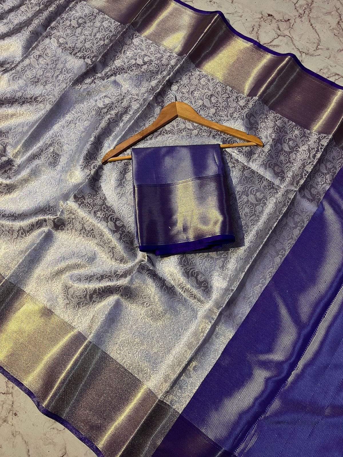 Maharani Lavender Blue Tissue Silk with Premium Lace & Stone Work