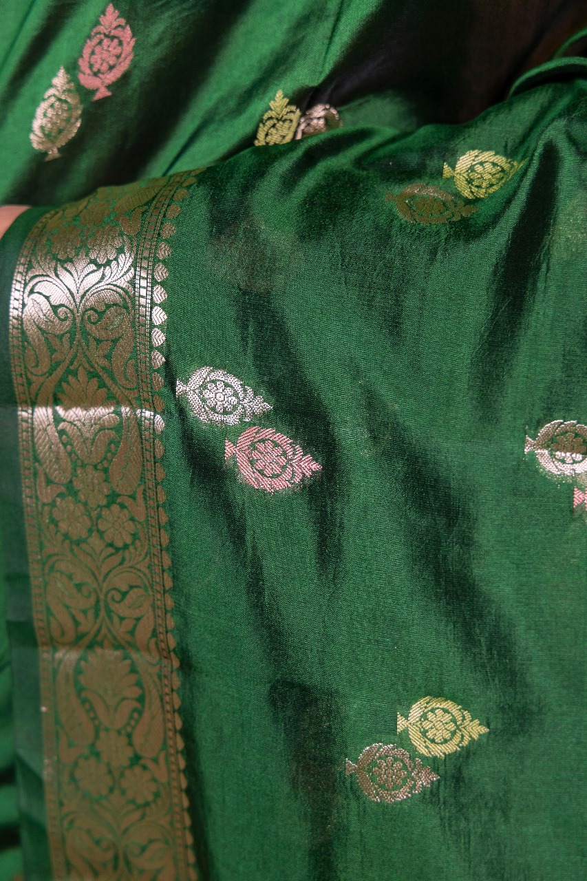 BNS Emerald Glory Alfi Katan Silk – Premium Green Banarasi Saree