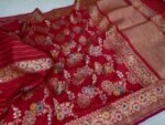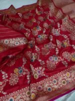 BNS Rajkumari Kadhuwa Pure Katan Silk Saree – Crimson Meenakari Elegance