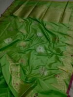 BNS Royal Kadhuwa Pure Katan Silk Saree – Parrot Green Elegance