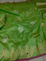 Be the first to review “BNS Royal Kadhuwa Pure Katan Silk Saree – Parrot Green Elegance”