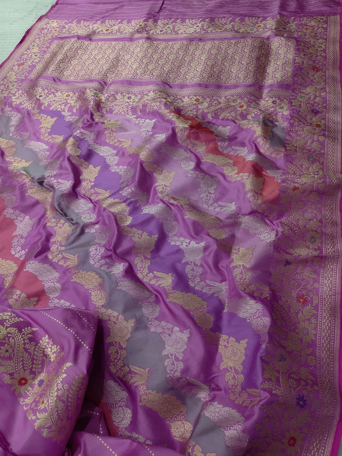 BNS Royal Rangrekha Kadhuwa Pure Katan Silk Saree – Orchid Purple Grace