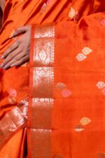 Premium Katan Silk saree in an exquisite Orange Sunset hue that immediately grabs attention