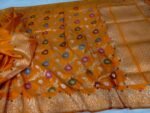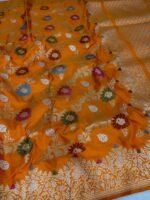 Be the first to review “BNS Surya Meenakari Kadhuwa Pure Katan Silk Saree – Orange Floral Royale”