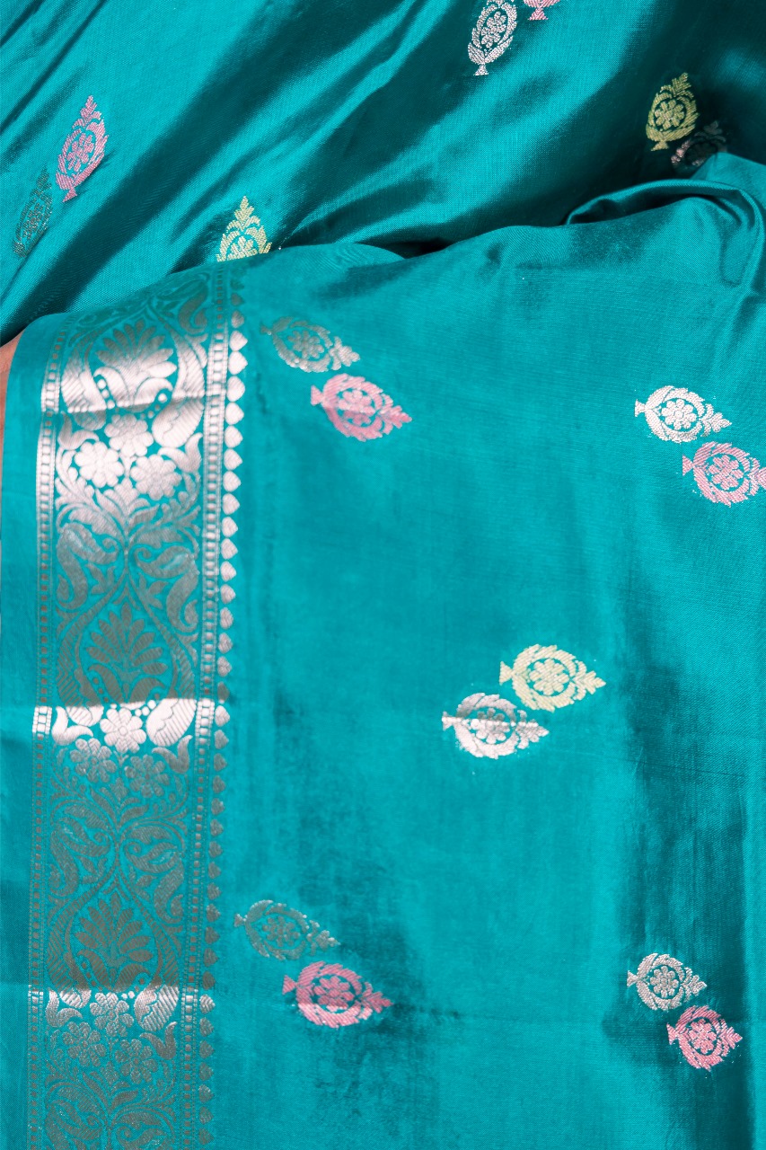 BNS Teal Majesty Alfi Katan Silk – Premium Banarasi Saree