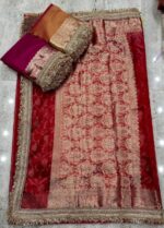 Be the first to review “Crimson Royalty Banarasi Tissue Saree with Lace Border” Cancel reply
