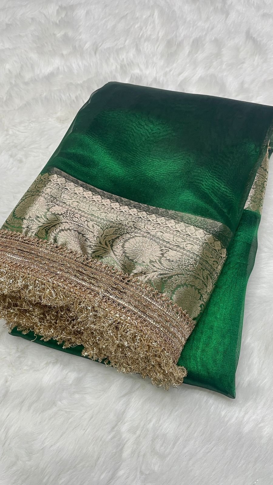 Emerald Grace Banarasi Tissue Saree with Lace Border
