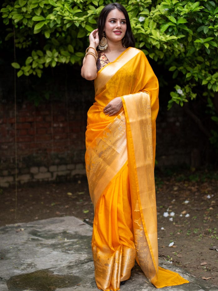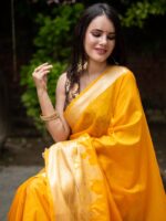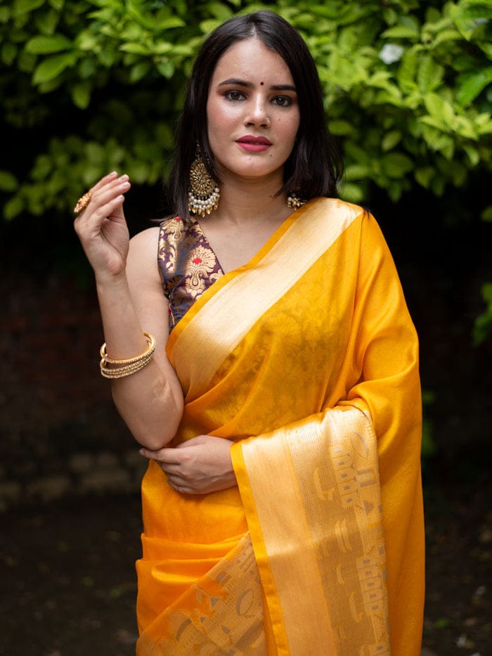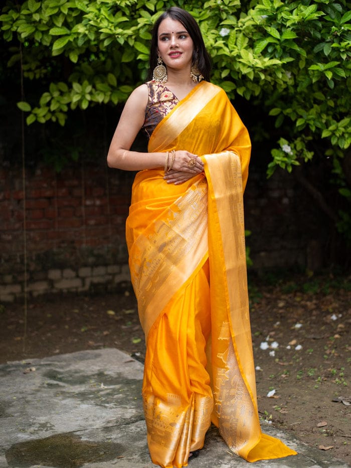 Ganga Prabha Yellow Banarasi Soft Warm Silk Saree