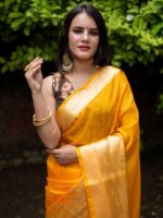 Be the first to review “Ganga Prabha Yellow Banarasi Soft Warm Silk Saree”