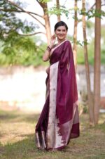 Be the first to review “Ganga Varnam Wine Banarasi Soft Warm Silk Saree”