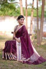 Ganga Varnam Wine Banarasi Soft Warm Silk Saree