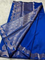 Rich zari borders and motifs that enhance the overall traditional Banarasi charm.