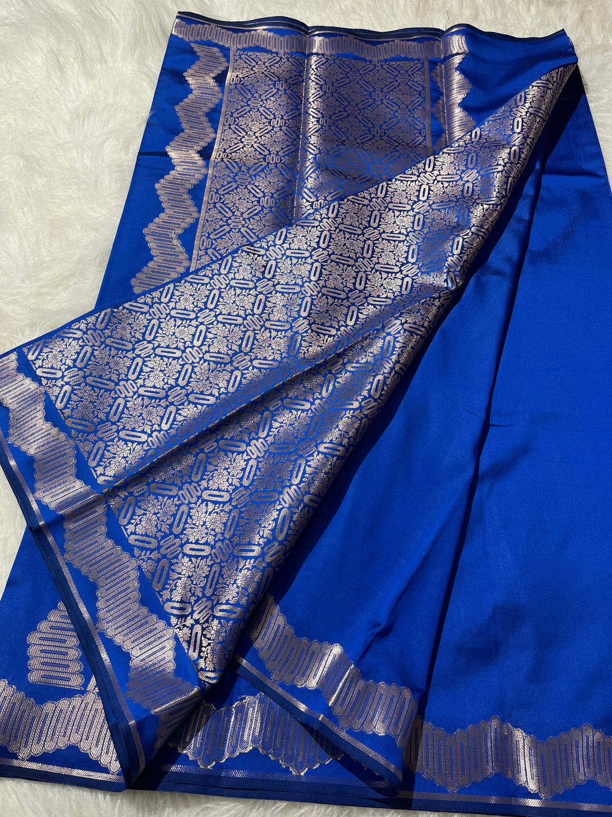 Premium Semi Katan Softy Silk with a glossy, smooth finish.