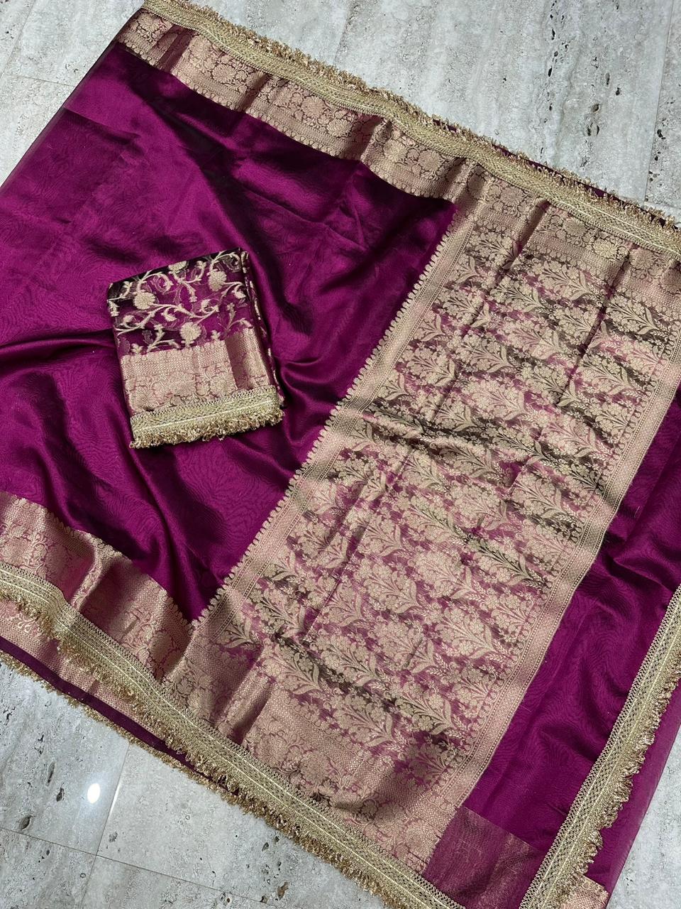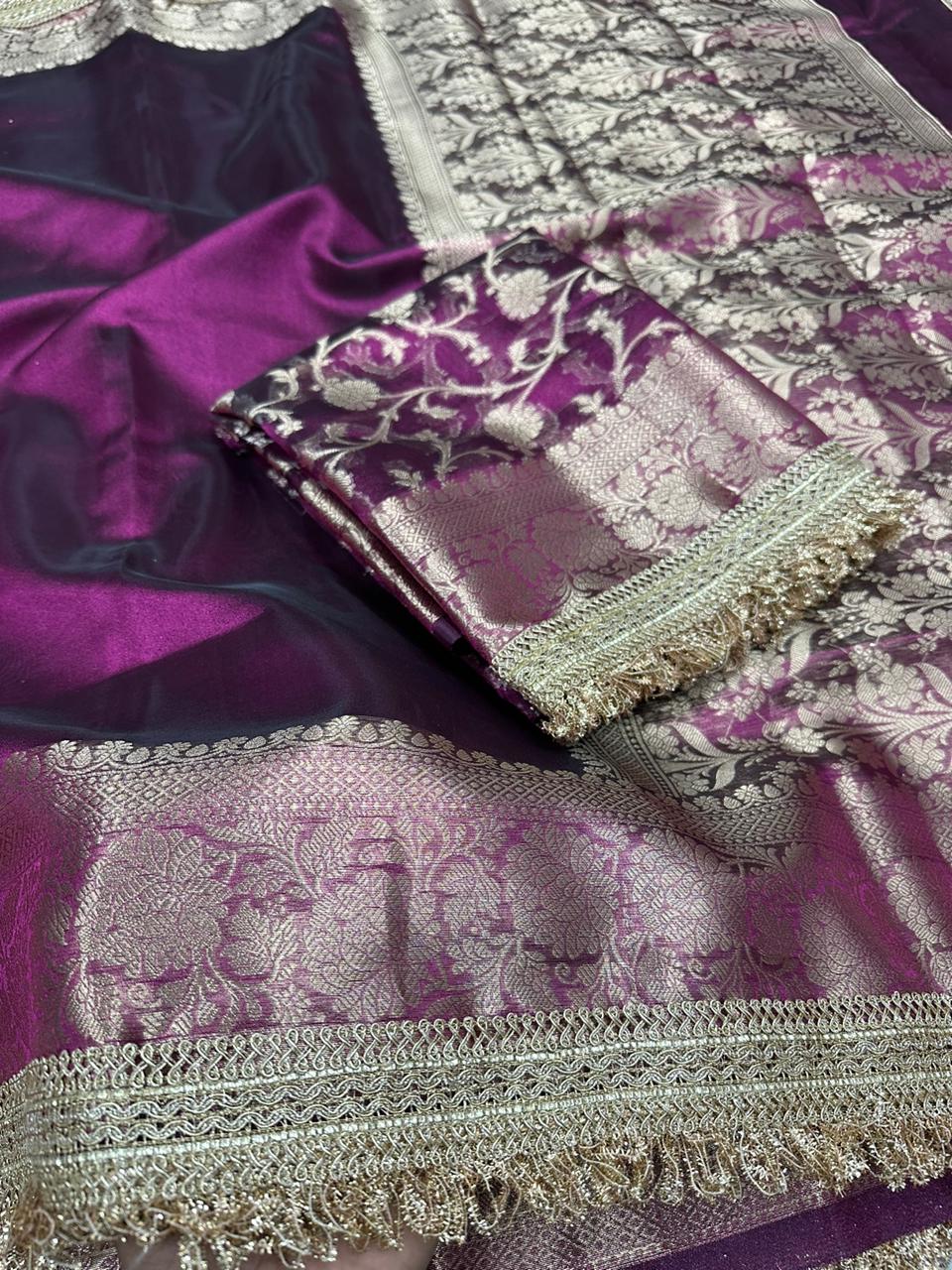 Lavender Luxe Banarasi Tissue Saree with Lace Border