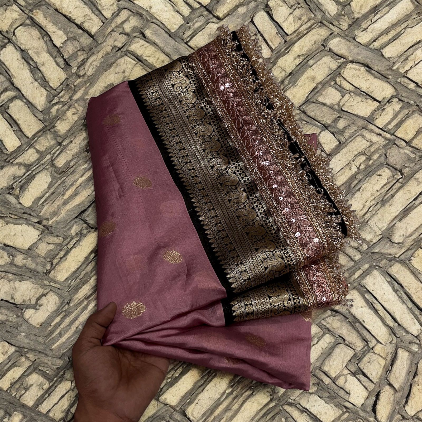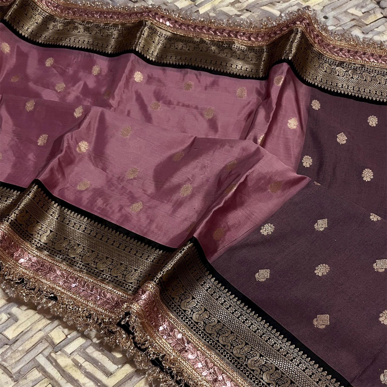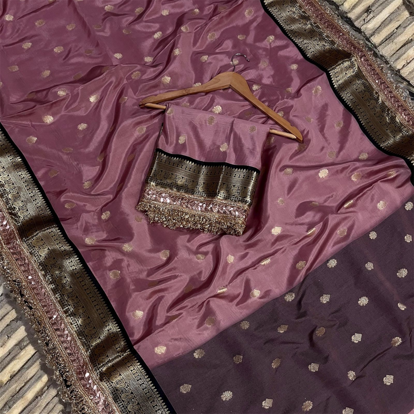 Mauve Majesty Banarasi Tissue Saree with Lace Border