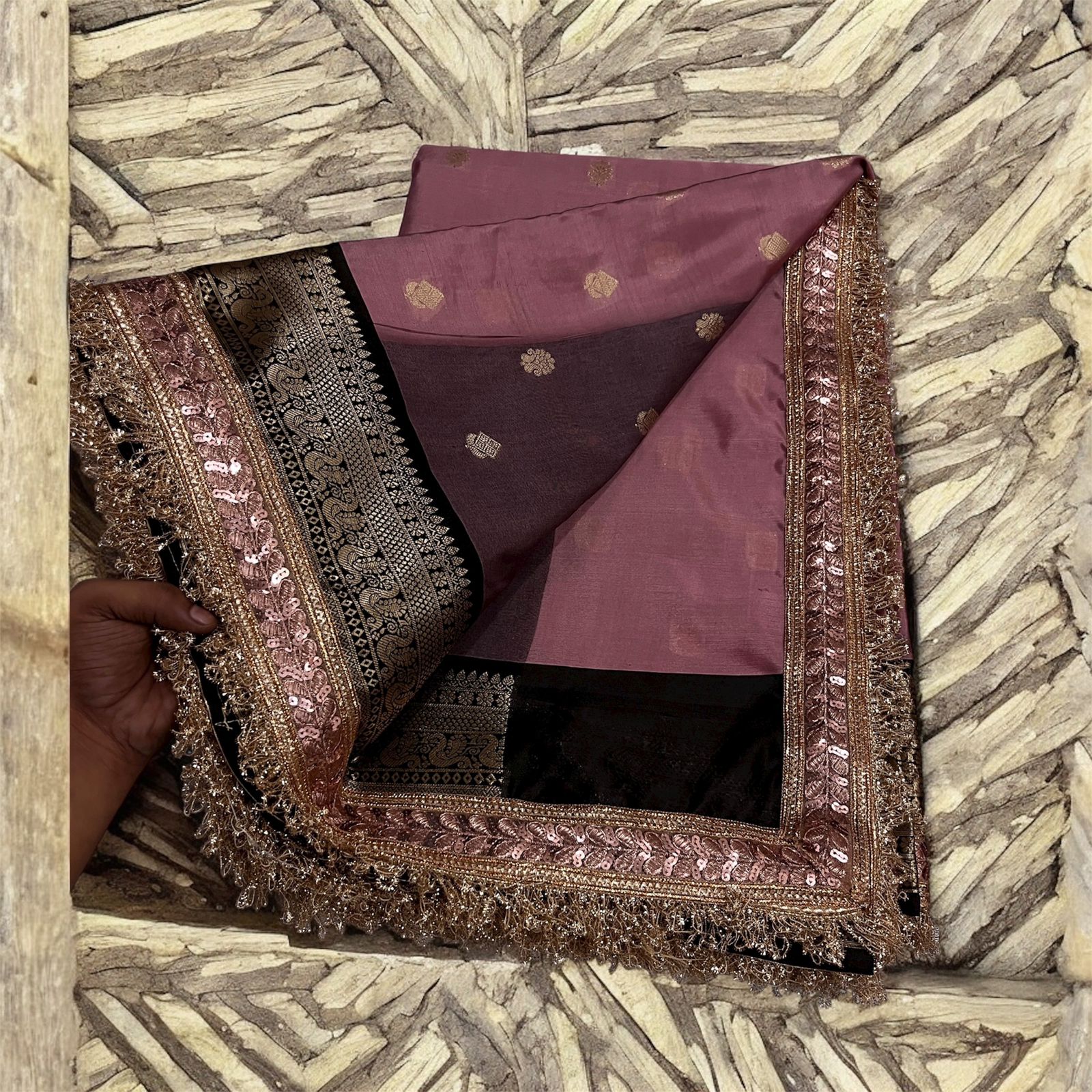 Be the first to review “Mauve Majesty Banarasi Tissue Saree with Lace Border” Cancel reply
