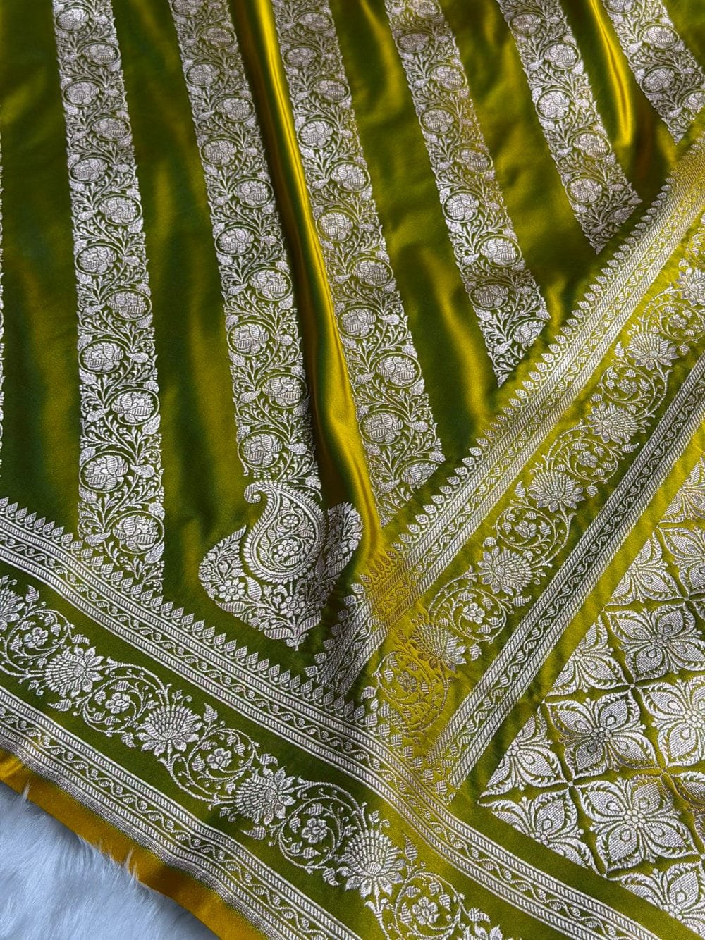 Crafted from premium Banarasi Mashru Silk, offering silk richness outside and soft comfort inside