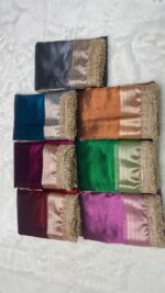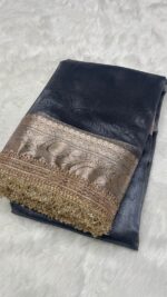 Fabric: Premium Banarasi Tissue, loved for its glossy shimmer, soft texture, and effortless drape.