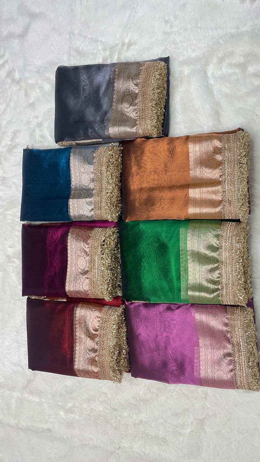 Ocean Royale Banarasi Tissue Saree with Lace Border