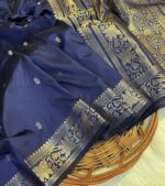 Be the first to review “Navy Blue Banarasi Soft Silk Booti Saree”