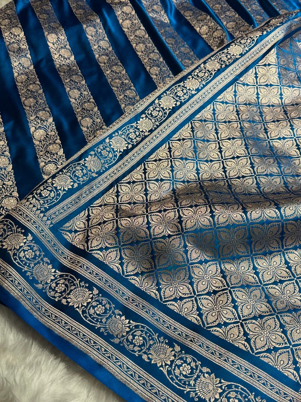 Woven using traditional Banarasi techniques that highlight fine detailing