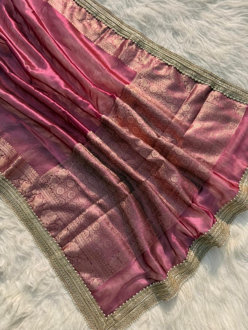 Noor-e-Riwaayat | Blush Rose Premium Tissue Silk Saree