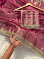 • Crafted from premium Banarasi tissue silk, celebrated for its soft texture and radiant sheen