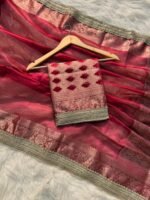 Paired with a matching Banarasi woven blouse piece, this saree is perfect for weddings, festive occasions, receptions, and elegant celebrations. Lightweight yet majestic, it ensures comfort while making a powerful style statement.