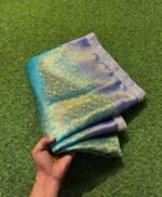 Be the first to review “Premium Blue Green Tissue Zari Silk Tanchui Pattern with Lace Work”