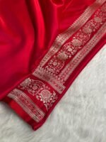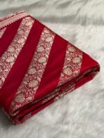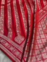 Red Shades Banarasi Floral Mashru Silk Saree — a captivating blend of rich red tones and elegant cross-pattern florals, crafted in luxurious mashru silk. A timeless choice for weddings and festive celebrations, where tradition meets irresistible charm.
