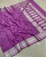 Drape yourself in royalty with this rich orchid-purple Banarasi Khaddi silk saree, adorned with intricate silver zari buta and border — a perfect blend of luxury, tradition, and timeless charm.
