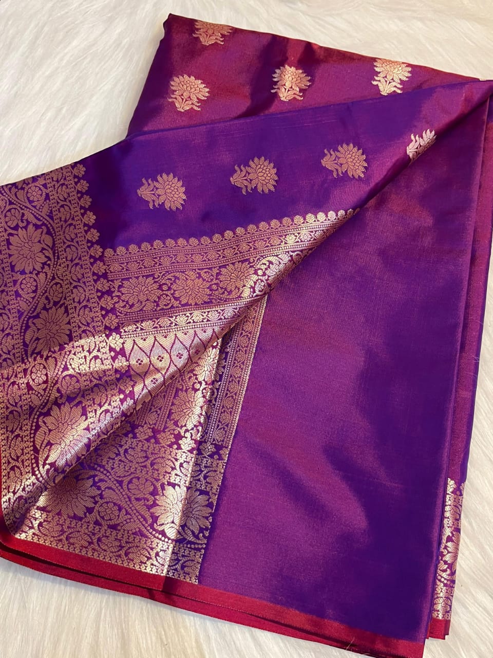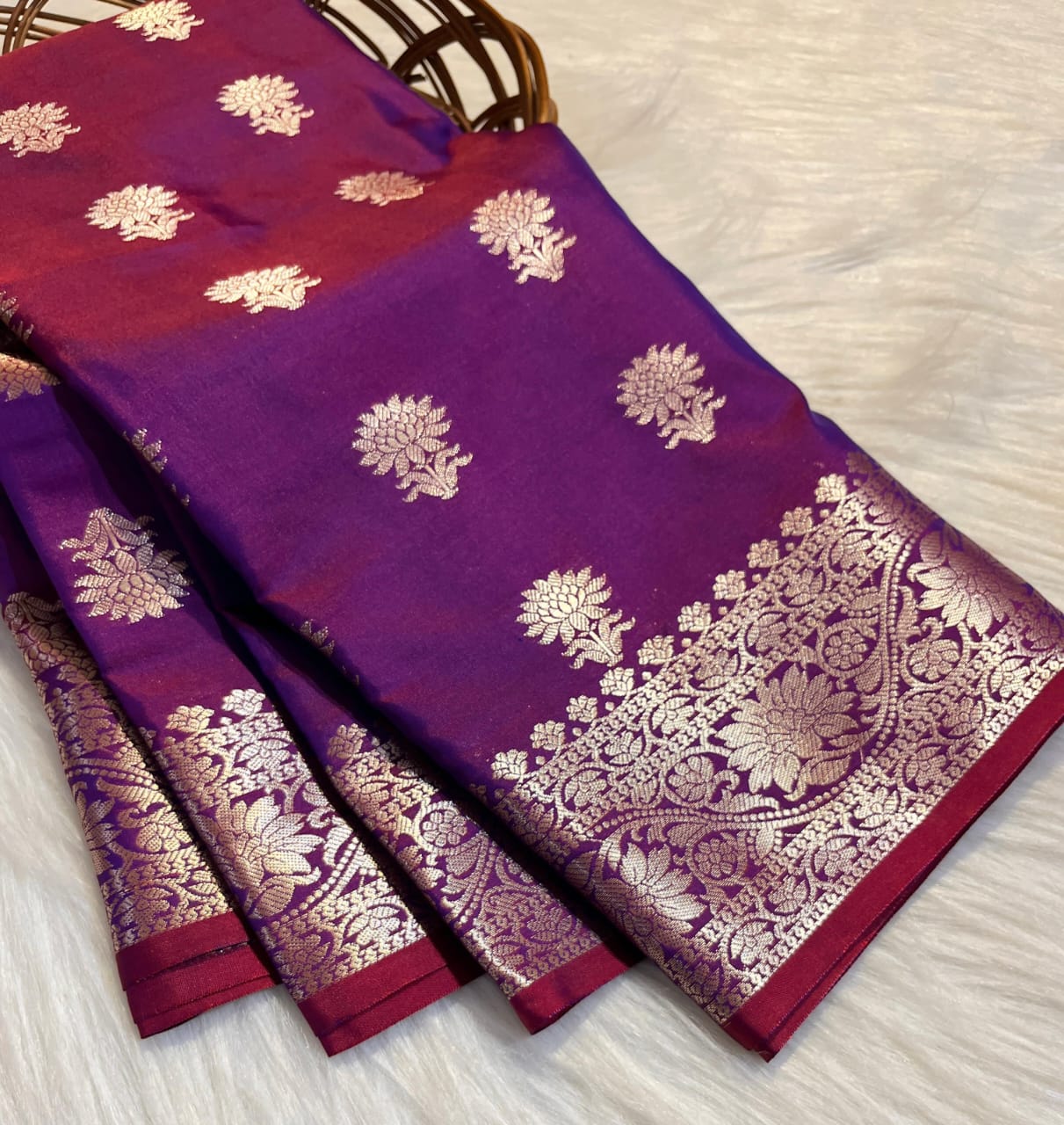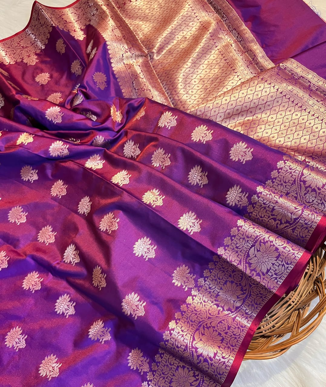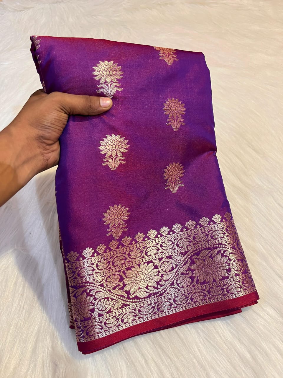 ROYAL PURPLE GULMOHAR ZARI SOFT SILK SAREE