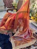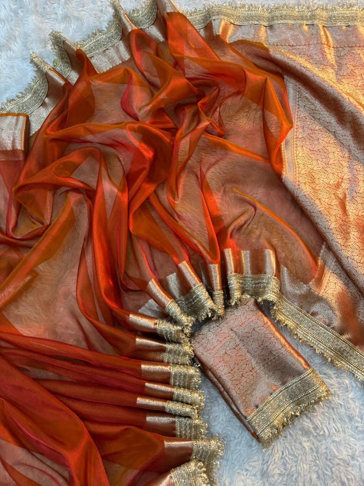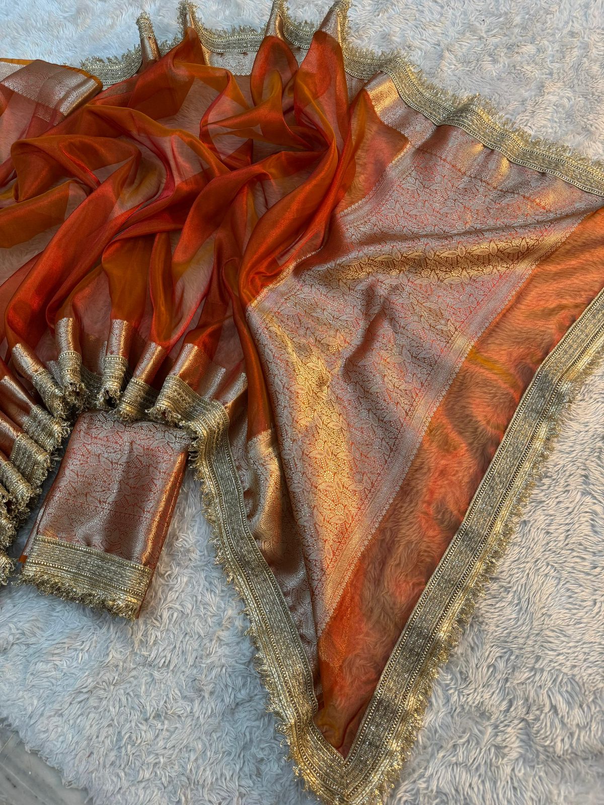 Sunset Glory Banarasi Tissue Saree with Lace Border