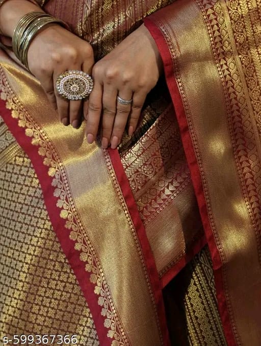 Weaving Style: Traditional Banarasi brocade, crafted with fine zari motifs for a luxurious finish.